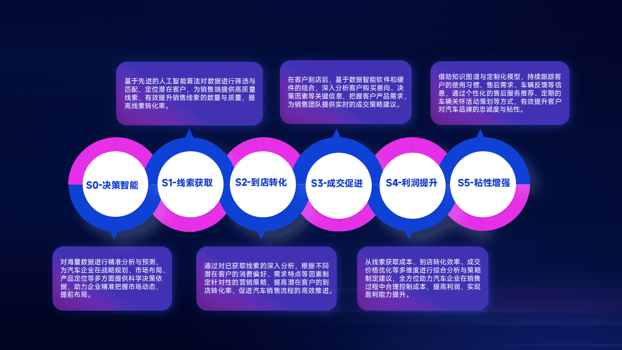 通过拓宽潜在客户来源、、优化线索分配并提高到店转化率,,以增强销售效率。。同时,,,,利用线索数据不断优化分析模型,,,,有效提升转化率,,扩大营销影响力。。。